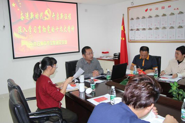 黨的十九大是一次不忘初心、牢記使命、高舉旗幟、團結奮進的歷史性盛會,極大地鼓舞了全黨全國人民為實現中華民族偉大復興的中國夢而奮斗的信心和力量,具有極其重大的歷史意義。當前和今后一個時期,華寶集團黨支部的首要政治任務,就是認真學習宣傳和全面貫徹落實黨的十九大精神,認真學習貫徹習近平新時代中國特色社會主義思想,以新氣象、新作為開啟決勝全面建成小康社會、全面建設社會主義現代化國家的新征程!